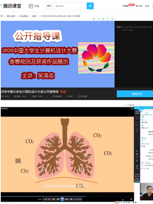 2月9日,人文医学新澳门六合彩内幕 组织教师在线上教学平台“腾讯课堂”,首次开展了“2020年中国大学生计算机设计大赛”线上讲座,全校481名同学踊跃报名参加。