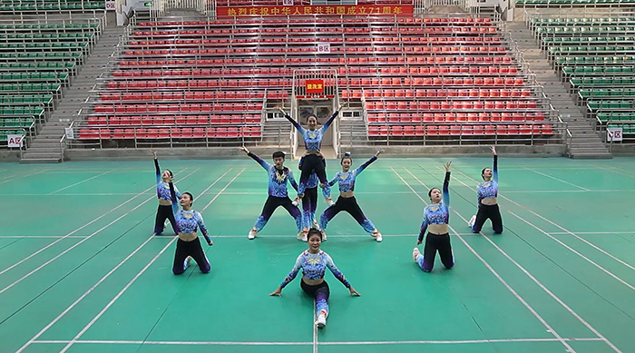 本次比赛由中国大学生体育协会主办,中国大学生体育协会健美操艺术体操分会及各专项委员会、菁体育承办。本次“云”系列大赛共有438所院校参加,参赛运动员总数达10515人次。系列赛之一健美操锦标赛有134所院校共1900多名运动员参加角逐。比赛以参赛单位拍摄视频上传到菁体育线上平台,由大赛组委会统一选派裁判进行评比。我校健美操俱乐部的魏之依、苏震华、班露、曹艳容、赵一鸣、王淼、冯戚、吴浩、陶鹏等九位同学经过努力,最终以总评分8.10分的好成绩获得了普通院校B组初级规定套路第一名。