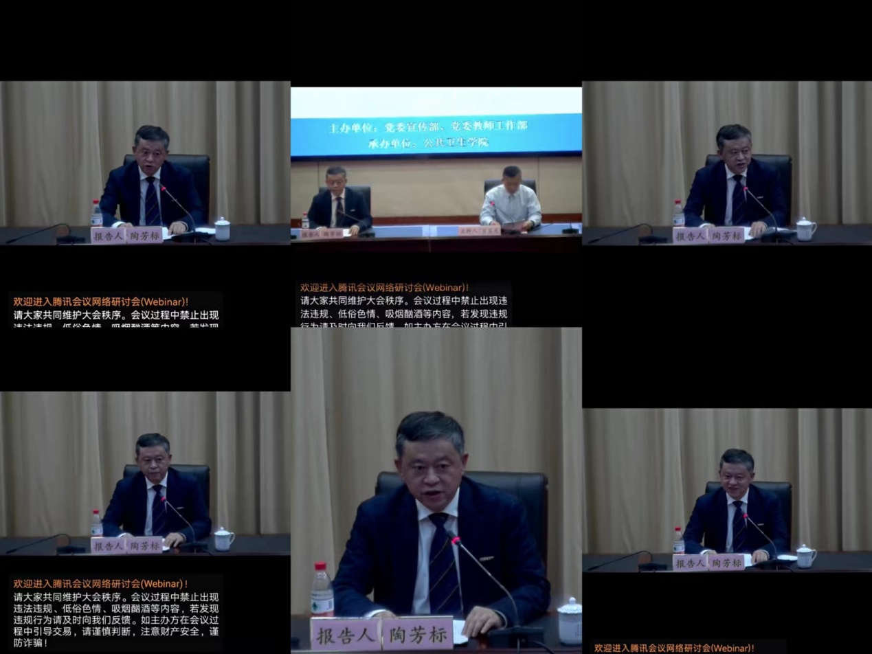 报告中,陶芳标教授结合个人求学、教书育人和科学研究的经历,从“校训的感悟”“站定三尺讲台”“勇攀科学高峰”“守护人民健康”等方面作了精彩分享。陶芳标教授是安徽省学术技术带头人、出生人口健康教育部重点实验室主任,获得过“全国先进工作者”“全国优秀科技工作者”“公共卫生与预防医学发展贡献奖”“吴阶平-保罗·杨森医学药学奖”“安徽省先进工作者”“安徽省教育系统新时代教书育人楷模”等多项荣誉,他的教学及科研经历与感悟生动诠释了为党育人、为国育才的初心使命,激励大家献身医学教育事业,弘扬安医精神,努力成为习近平总书记倡导的“成为塑造学生品格、品行、品味的‘大先生’”。