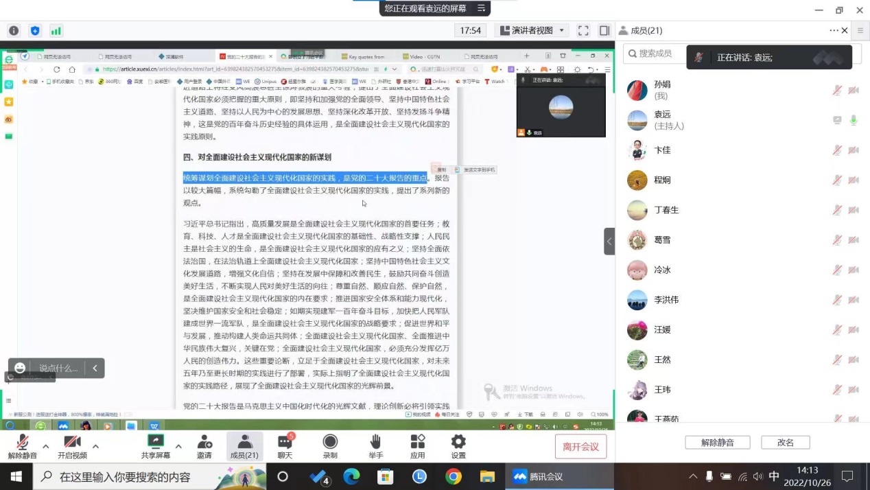 10月26日下午,外语党支部通过腾讯视频召开专题会议,传达学习党的二十大报告的重大理论创新。会议从外语系教学实际出发,学习英文文章《Key quotes from Xi Jinping's report at 20th CPC National Congress》,观看学习视频《Review: Xi Jinping at the 20th CPC National Congress》。