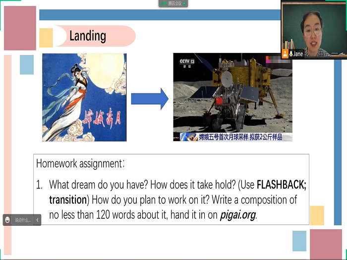 本次教学大赛分为单元教学设计和课堂教学展示两部分,以教学设计文本和授课视频形式提交竞赛组委会评审。我校大学英语综合课教学团队选择“Overcoming Obstacles”的单元主题,从学情分析、教学理念、教学目标、教学过程、评价方式、教学反思等6个维度对单元教学进行了精心设计。教学展示中教师以问题探究的形式层层深入,通过故事脉络梳理、故事角色解析、插叙的写作方法运用、主题拓展讨论、学生习作点评等教学环节,培养学生的英语综合应用能力和思辨能力,提升人文素养。整个单元教学应用混合式教学模式,采用多元化的过程评价方式,并巧妙融入课程思政元素,引导学生既志存高远,又脚踏实地,为实现个人和国家梦想不畏艰难、努力奋斗。