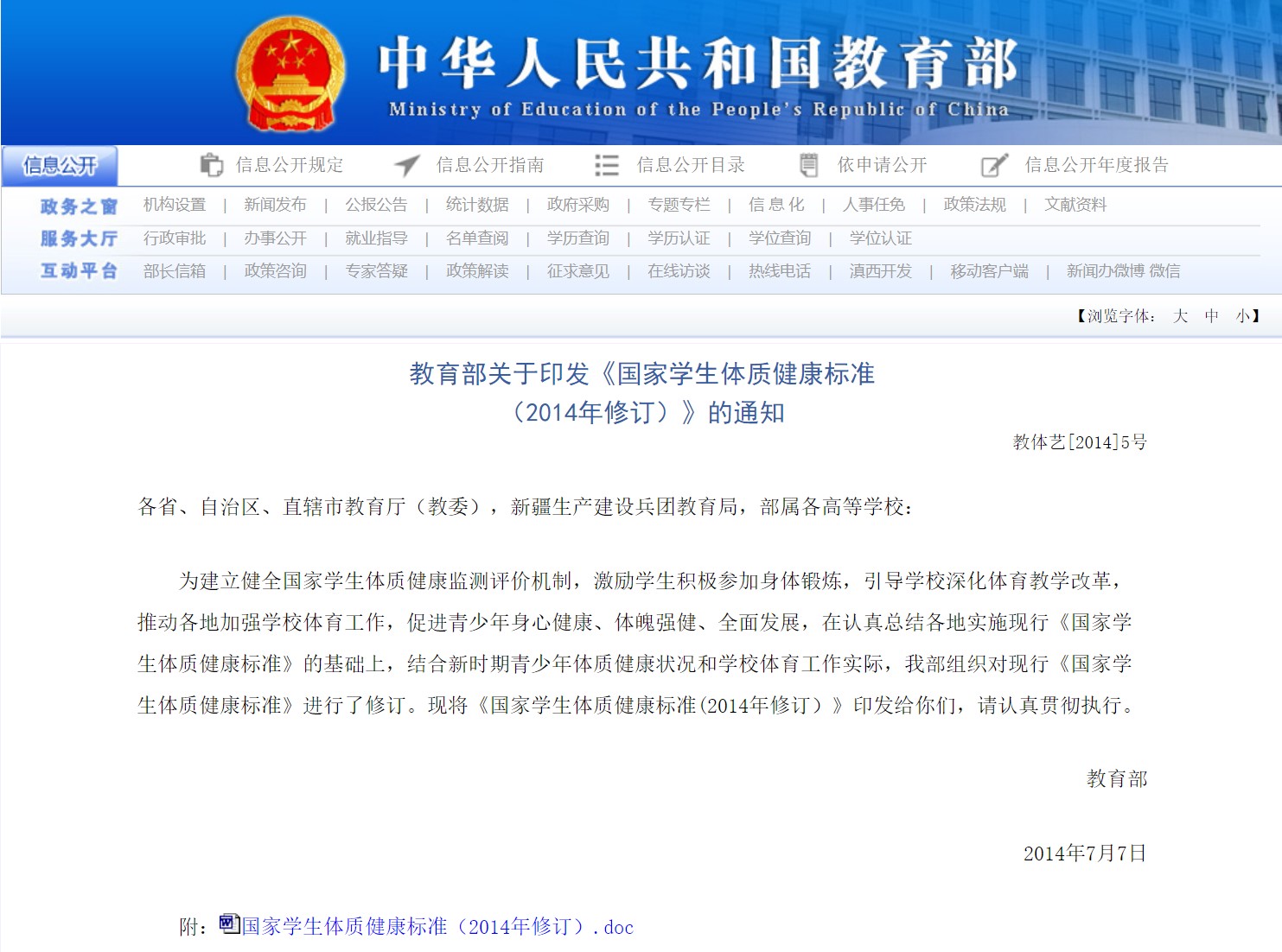 教育部关于印发《国家学生体质健康标准(2014年修订)》的通知
