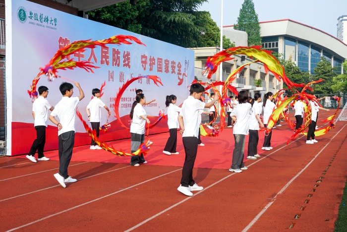 4月22日清晨,筑牢人民防线 守卫国家安全——“国旗下的演讲”主题教育活动在我校梅山路校区体育场举行,新澳门六合彩内幕 学生在活动中为大家带来的精彩的《彩带龙》表演。