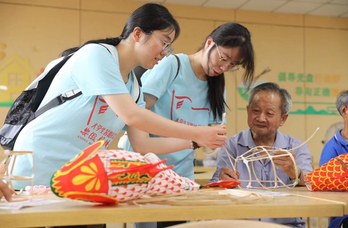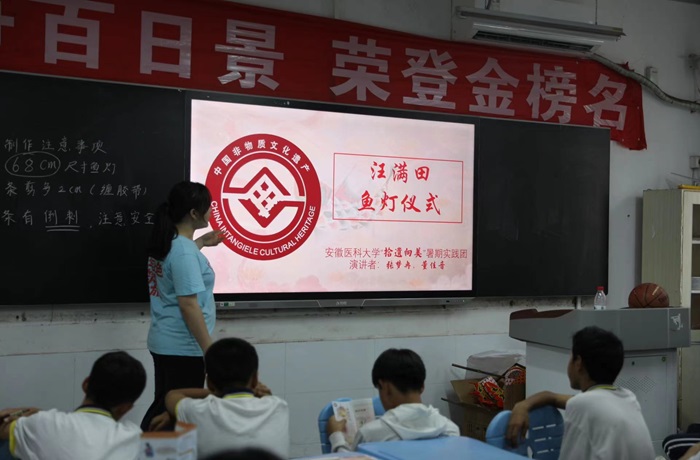 在泾县稼祥中学及泾川敬老院,实践团宣讲了医疗急救的基本知识及鱼灯文化知识,并与老人及留守儿童们一起制作非遗鱼灯,让大家近距离感受非遗之美。稼祥中学负责人莘国荣希望双方能够深化合作,不断提高当地学生的健康意识,增强文化自信。