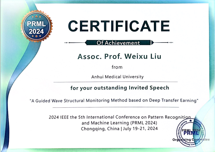 近日,第五届IEEE模式识别与机器学习国际会议(2024 IEEE the 5th International Conference on Pattern Recognition and Machine Learning,PRML 2024)在重庆召开。本次会议采取线上线下相结合的方式举行,来自美国、澳大利亚、英国、印度、马来西亚、泰国等6国及全国各省市100余位专家学者参加。新澳门六合彩内幕 柳伟续副教授受邀担任本次会议技术组委会(Technical Committee)委员、分会主席(Session Chair)并作大会邀请报告《A guided wave structural monitoring method based on deep transfer learning》。围绕模式识别与机器学习相关主题,本次大会共有5个邀请报告、45个演讲报告、16份海报等展示内容。