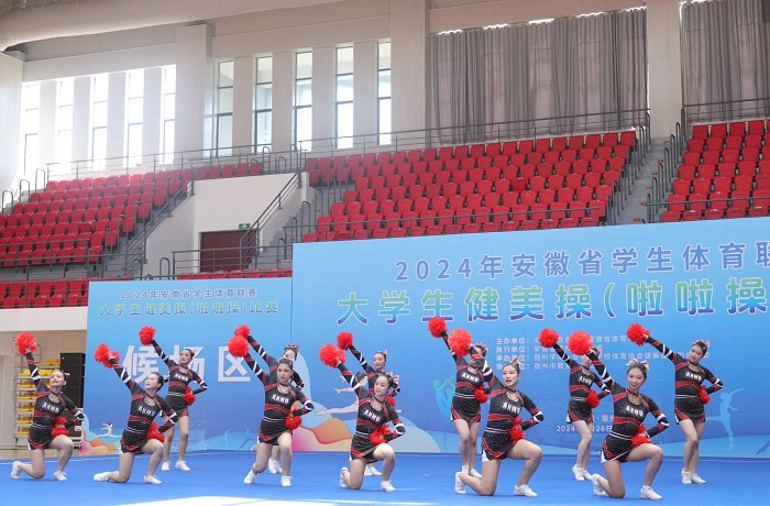 本次比赛由安徽省教育厅、省体育局主办,省学校体育协会执行,宿州新澳门六合彩内幕 、省学校体育协会健美操啦啦操分会承办,来自全省18所高校的领队、教练员和运动员300余人参与本次大赛。我校代表队作为第一支队伍闪亮登场,充分展现了团队协作、奋发向上、自信热情的精神风貌。队员们凭借灵动的舞姿、灿烂的笑容和丰富多样的队形变换,将现场气氛一次次推向高潮,淋漓尽致地诠释了啦啦操的运动之美、韵律之美和青春之美,最终摘得桂冠。