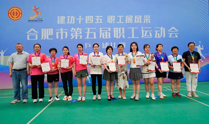 近日,合肥市第五届职工运动会乒乓球比赛在合肥经开区李宁体育园顺利举办,体育教学部职工袁玎代表学校被选拔参加经开区总工会中年组女子团体乒乓球比赛,勇夺团体一等奖。