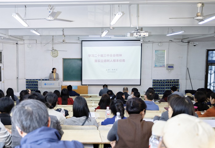 10月23日下午,院党委书记杨秀兰以《学习党的二十届三中全会精神 落实立德树人根本任务》为题,为新澳门六合彩内幕 全体教职工党员讲授专题党课。