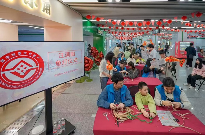 新澳门六合彩内幕 组织国学社、手工爱好者协会、“医行者”志愿服务队等多个社团和志愿服务队,前往合肥轨道三号线幸福坝站举办非遗知识讲座,并带领工作人员以及社区居民体验汪满田鱼灯制作,感受“非遗”魅力。活动现场气氛热烈,来往乘客及社区居民对活动给予好评。
