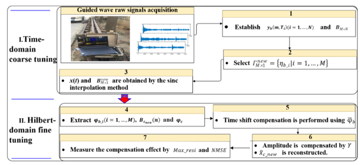 针对温度变化导致超声导波信号不稳定这一长期困扰结构健康监测领域的难题,本研究创新性地提出了基于改进最优基线选择、希尔伯特变换和负指数振幅衰减关系的温度补偿算法(IOHN)。该方法通过构建稀疏温度基准库和两阶段补偿策略,实现了对导波信号时间偏移和振幅衰减的有效补偿。实验结果表明,与传统方法相比,IOHN算法将最大残差误差降低10dB,归一化均方误差减少0.15-0.2,显著提升了复杂环境下超声导波结构健康监测的稳定性和可靠性。